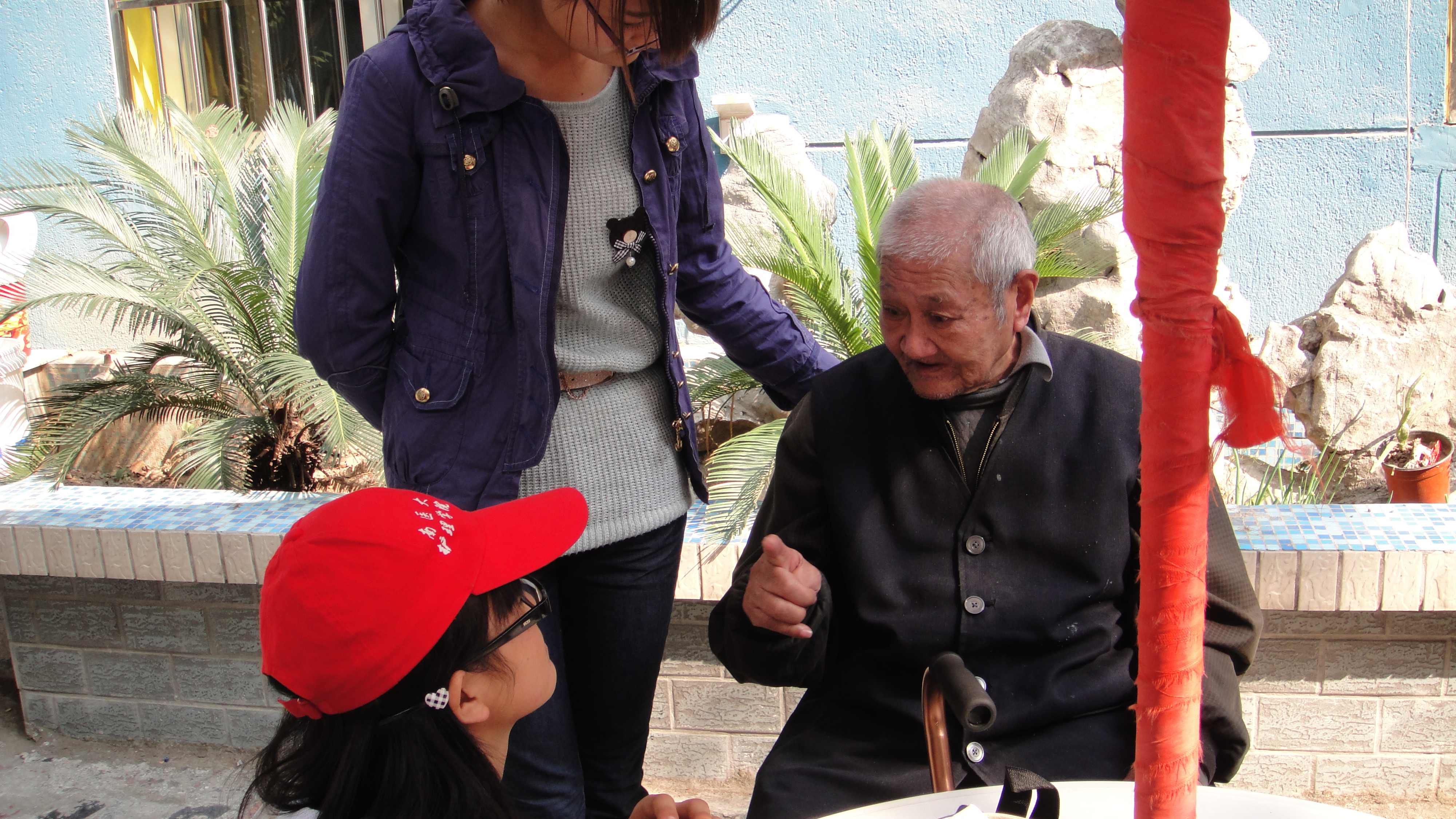 这次,我们恰巧和南京审计大学的同学们一起来到了这里,大家共同的目的都是给老人带来欢笑。在简单地分了一下组之后,有的人在楼上,有的人在楼下,还有的人在院子里,一起陪着爷爷奶奶们。
