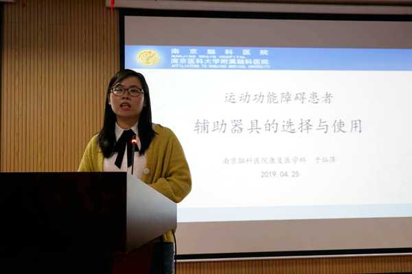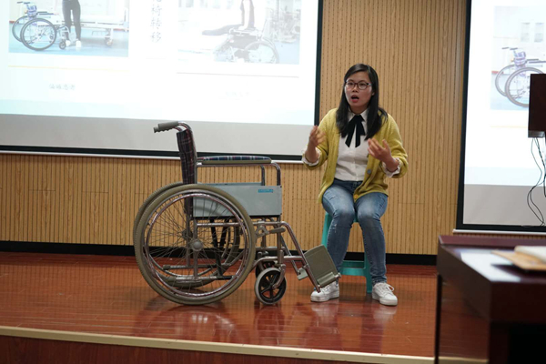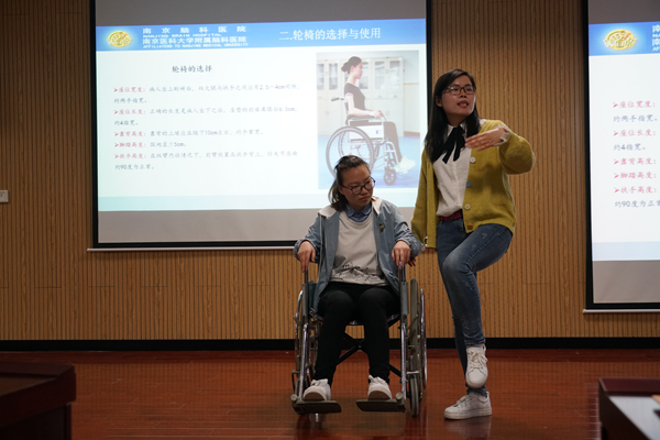 此次讲座由南京医科大学附属脑科医院的于灿萍老师主讲。讲座初始,于老师进行了自我介绍。接下来,老师讲述了康复的重要性,并以脑瘫患者的病例导入。同学们还一起观看了视频:压疮患者的情况。随之老师阐述康复的理念,为治疗护理,提高患者生活,自理能力,助其重返社会。